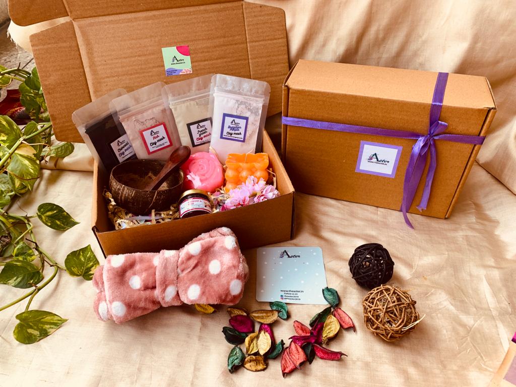 Aster home spa bundle bundle, 11 items, assorted face clay pack, aromatic candle, natural handmade soap, home spa bundle, Diwali gift, No Parabens and sulphate, All skin type.