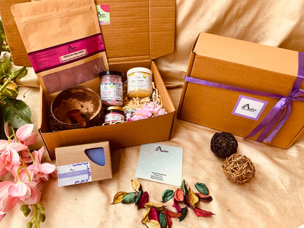 Aster handmade selfcare combo, 8 items, Body butter, Body scrub, Lip scrub, handmade soap, selfcare hamper, gift for him/ gift for her, work from home essentials, home spa bundle, Diwali gift, No Parabens and sulphate, All skin type.