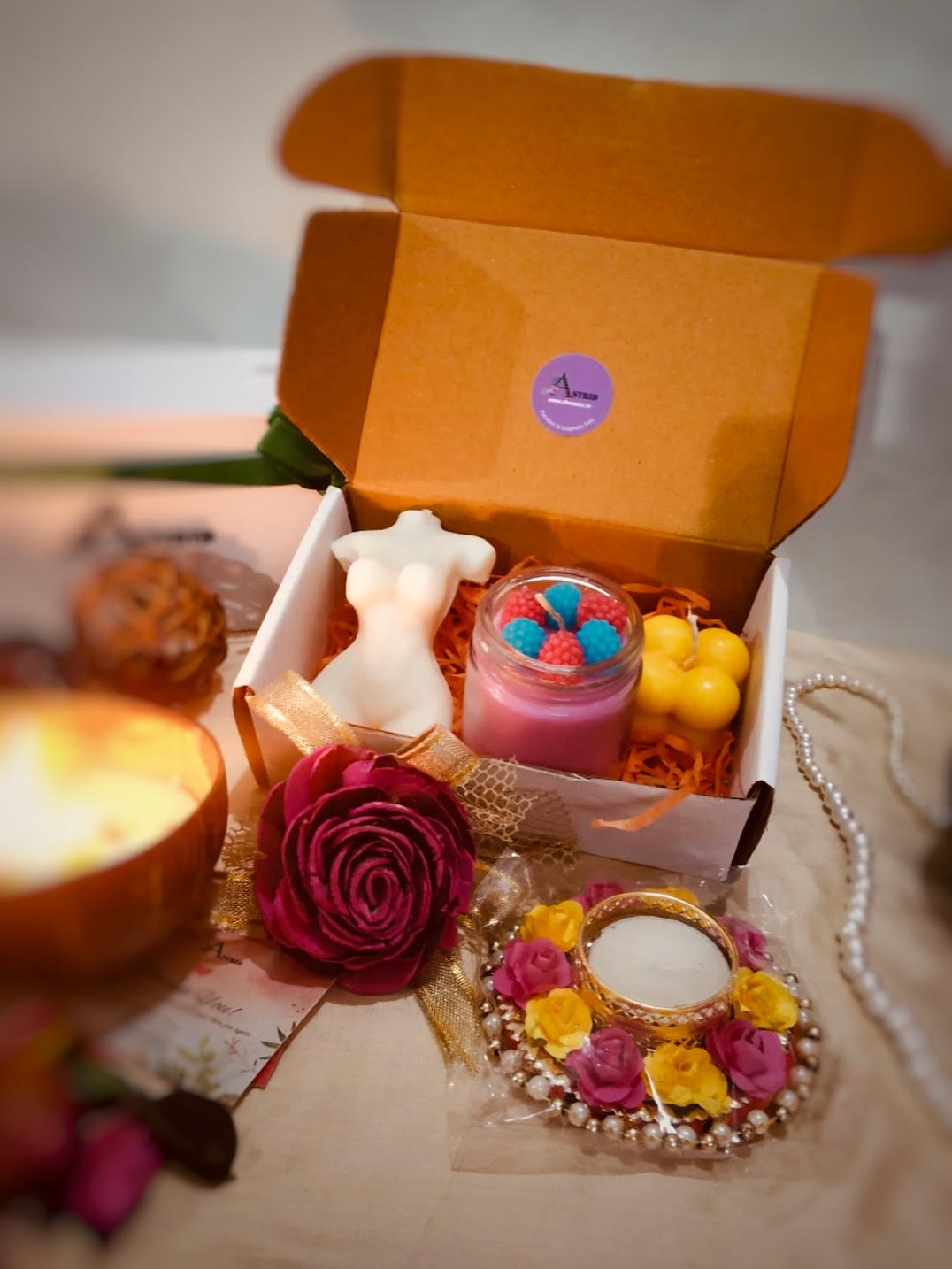 Astrid box of candle hamper, three luxury scented candle
