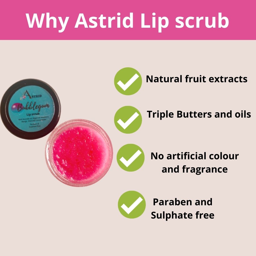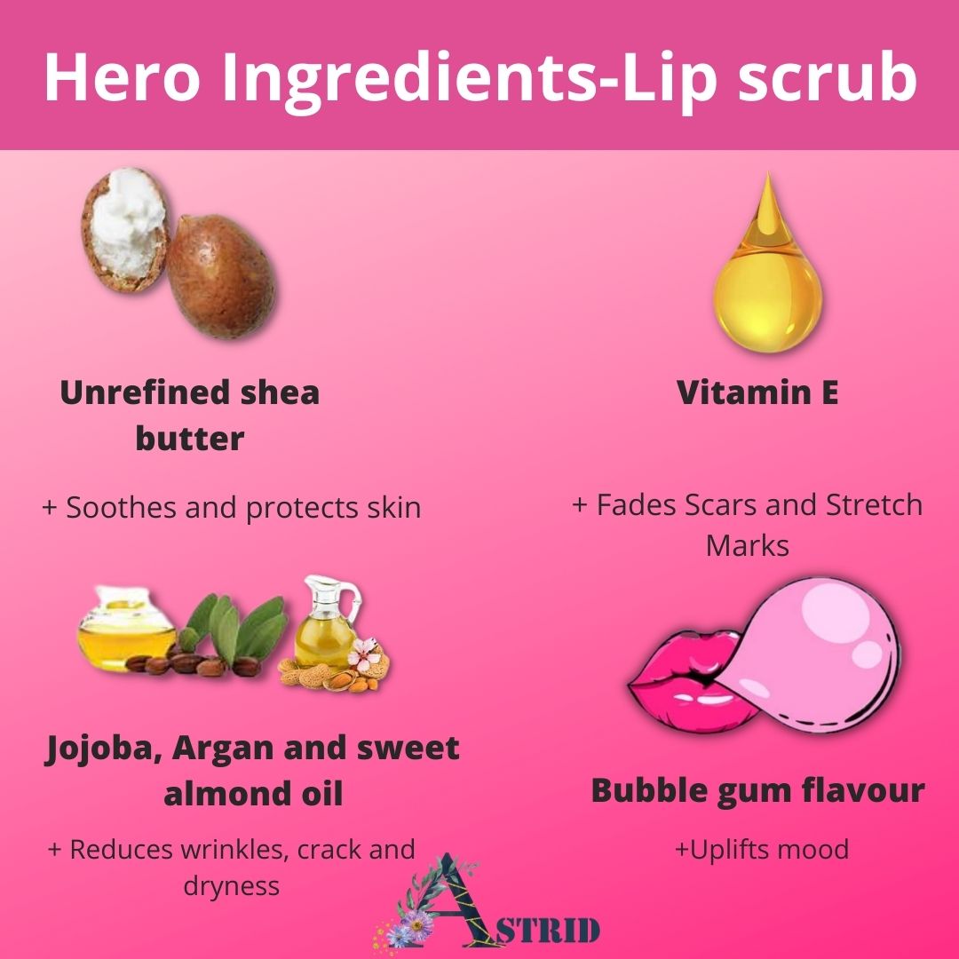 Astrid Bubblegum lip scrub, No Parabens and sulphate, 12 GMS, Lip scrub, exfoliate and lighten lips, all skin types