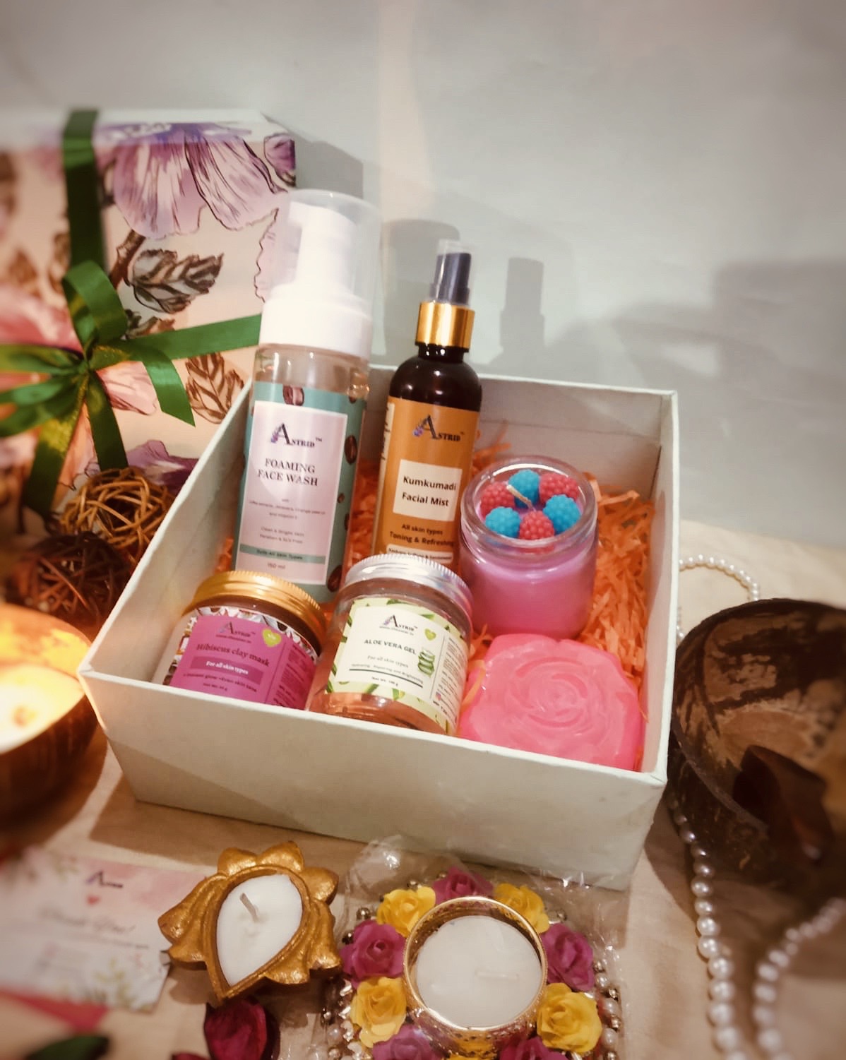 Astrid Chill pill hamper, foaming face wash, hibiscus clay, Daily essentials,6 pieces , Gift Kit, Skincare daily essentials, hamper for Her and him, Paraben and Sulphate free