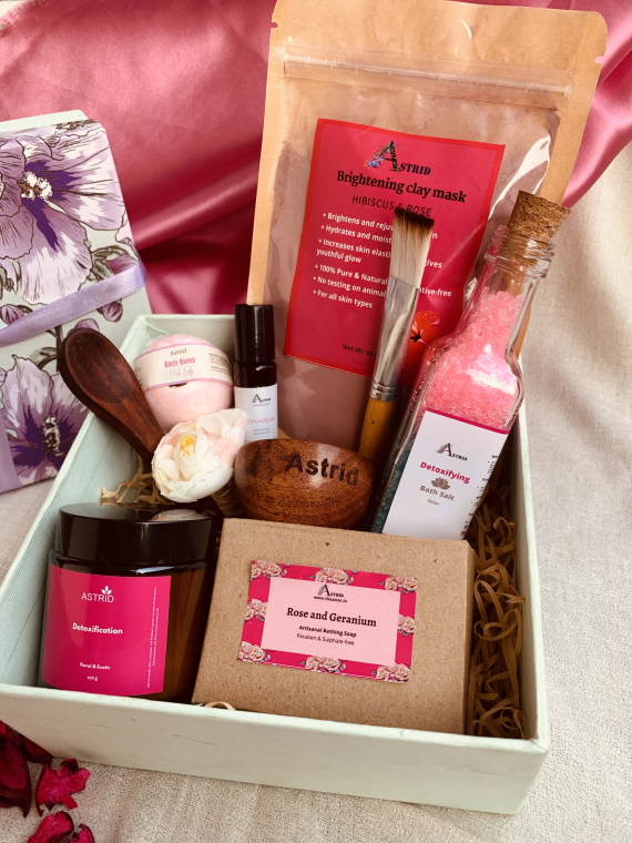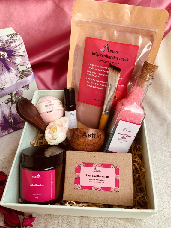 Astrid Detoxification Floral gift set, Hibiscus, Rose , geranium, Set of 9, Gentle floral scent with refreshing hints of citrus, Bath and Body Care, Wellness Spa hamper, Bridesmaid hamper, Paraben and Sulphate free