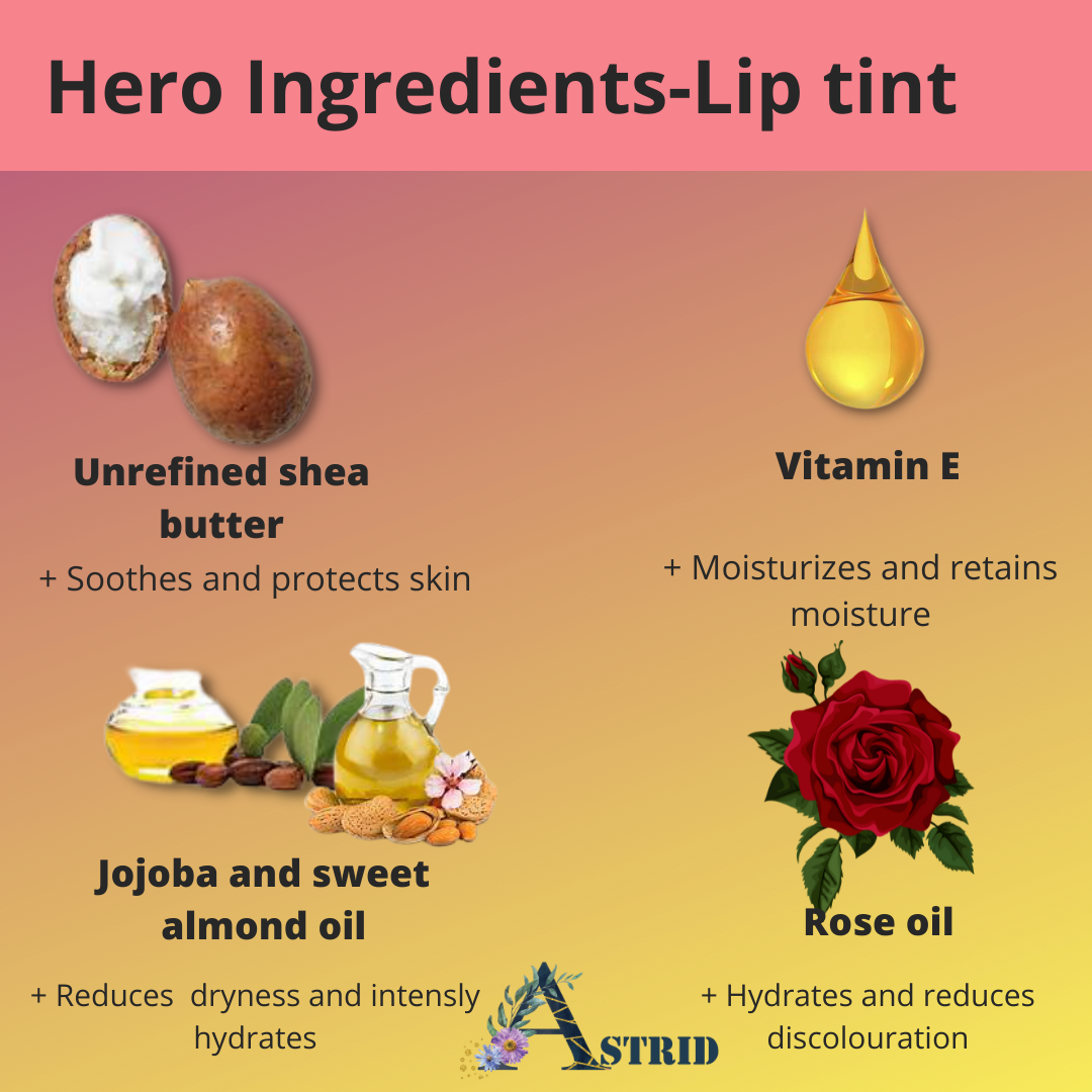 Astrid lip repair combo, Lip scrub and lip tint, Lip hydration, Natural scrub, exfoliate and lighten lips, all skin types, No Parabens and sulphate.