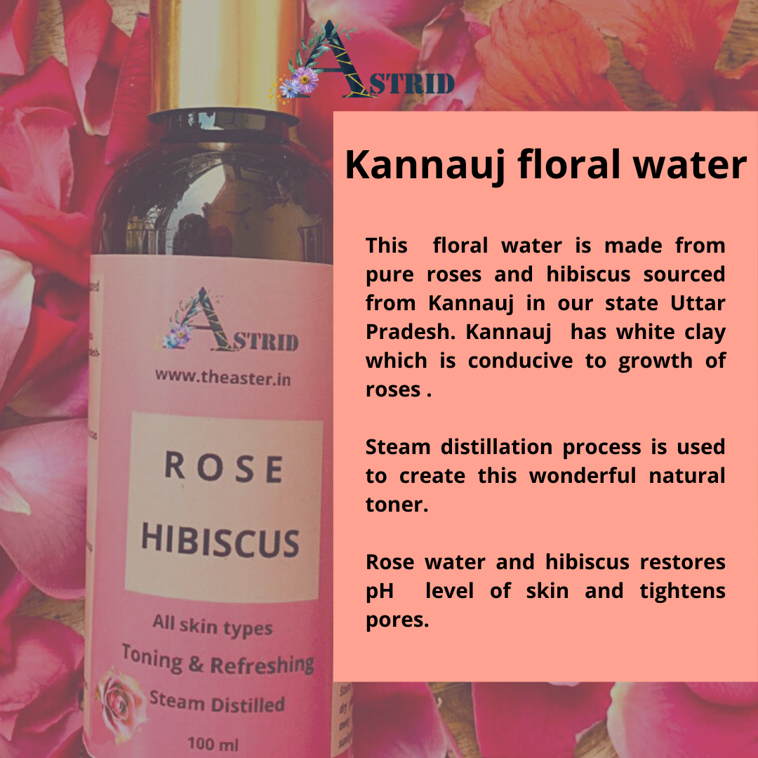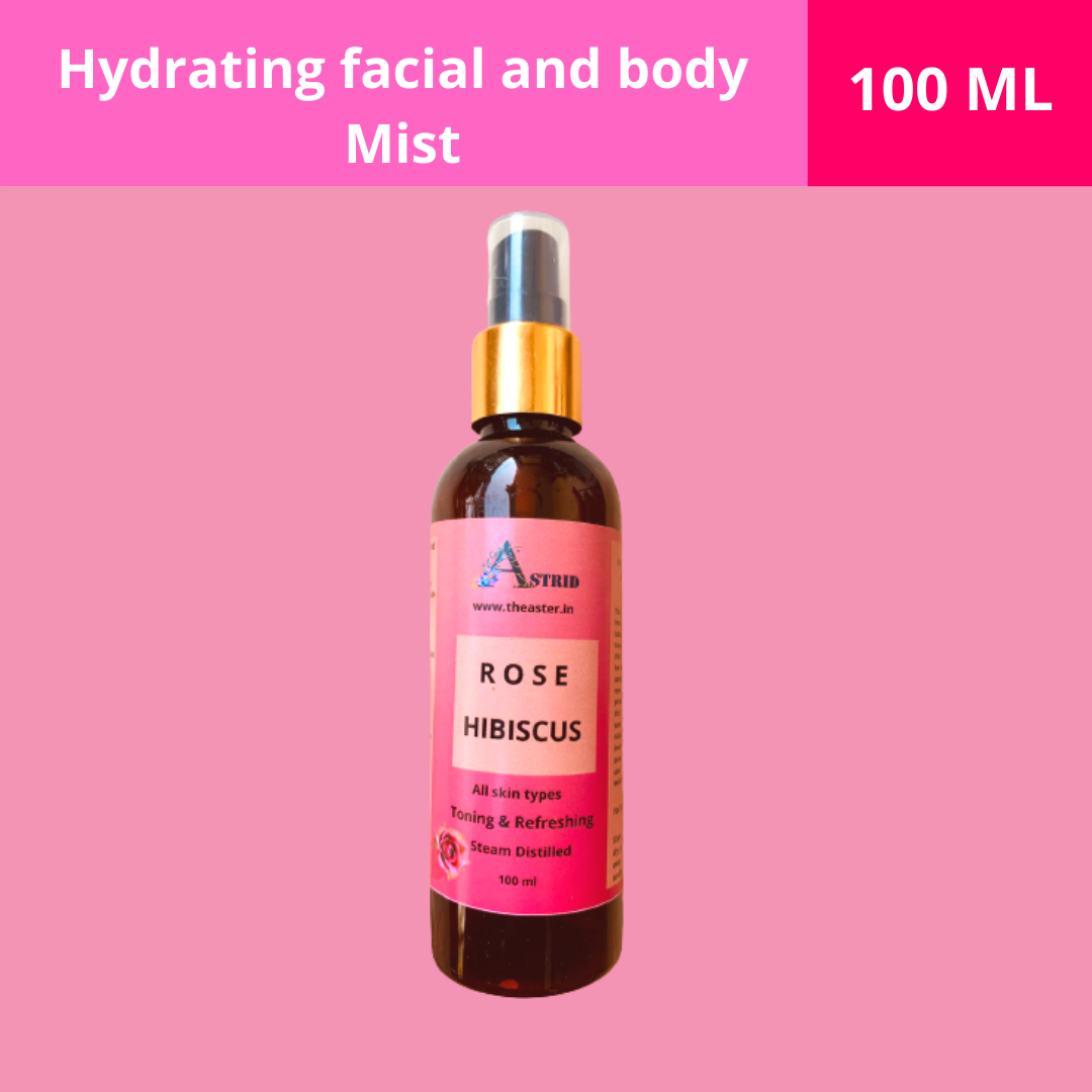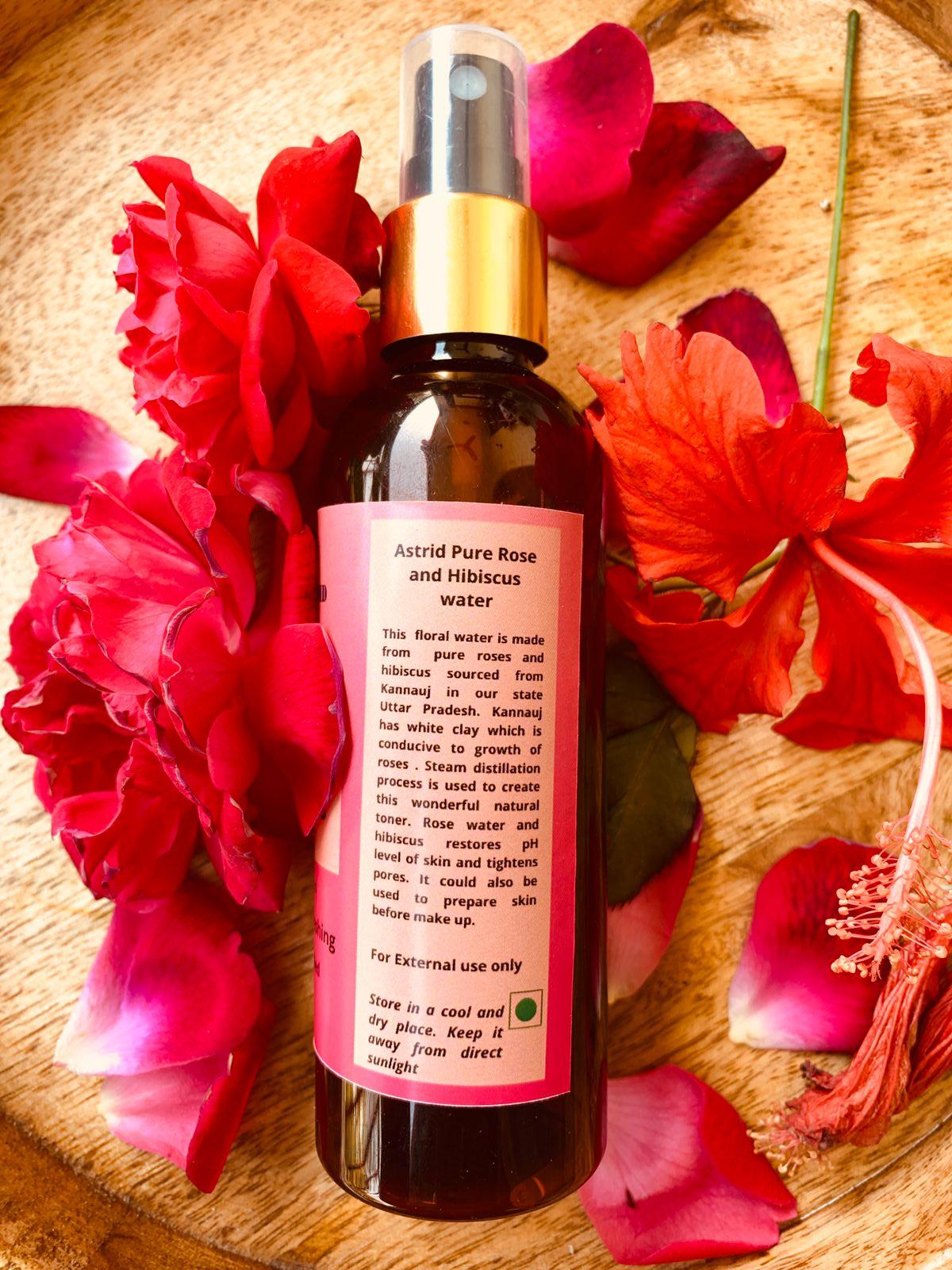 Astrid Rose and Hibiscus Mist, Pure floral water, Rose water, Toner & refreshing mist, Natural, No Parabens and sulphate