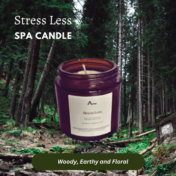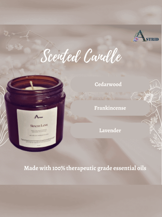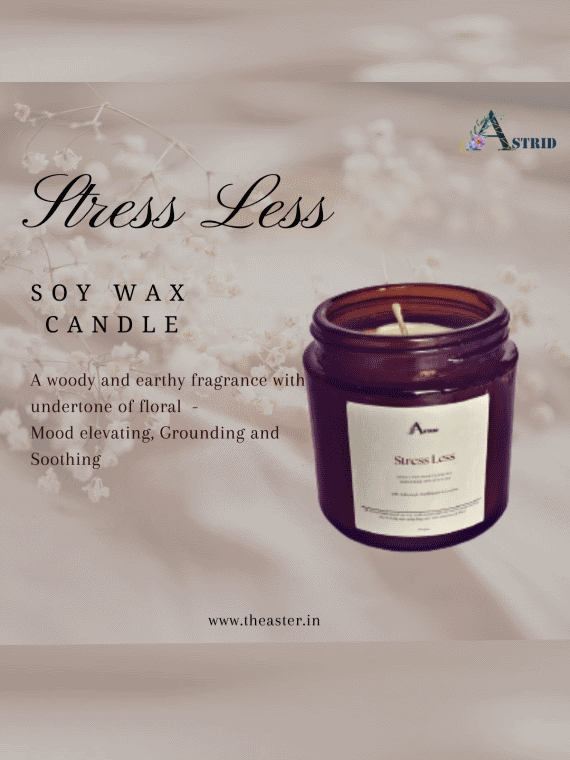 Astrid Stress Less Aromatherapy Candle, woody and earthy, Soy wax candle Jar, Relaxation & Spa