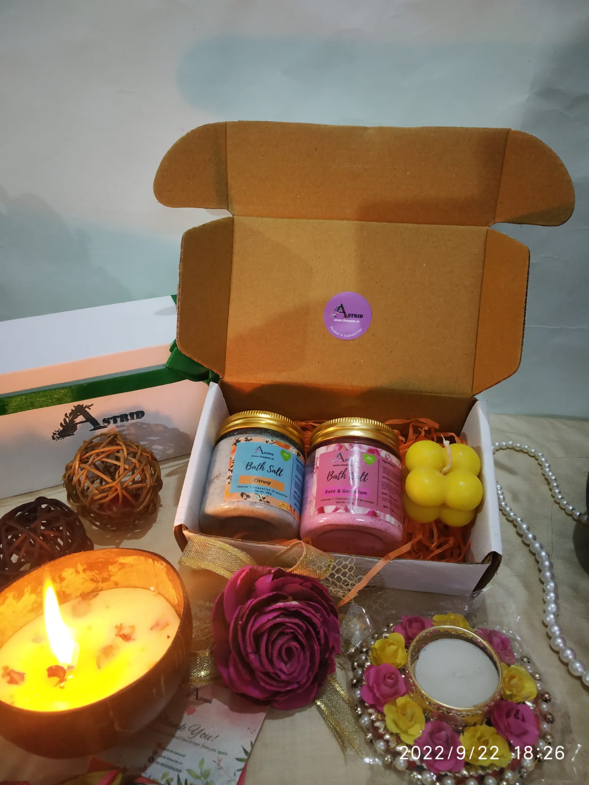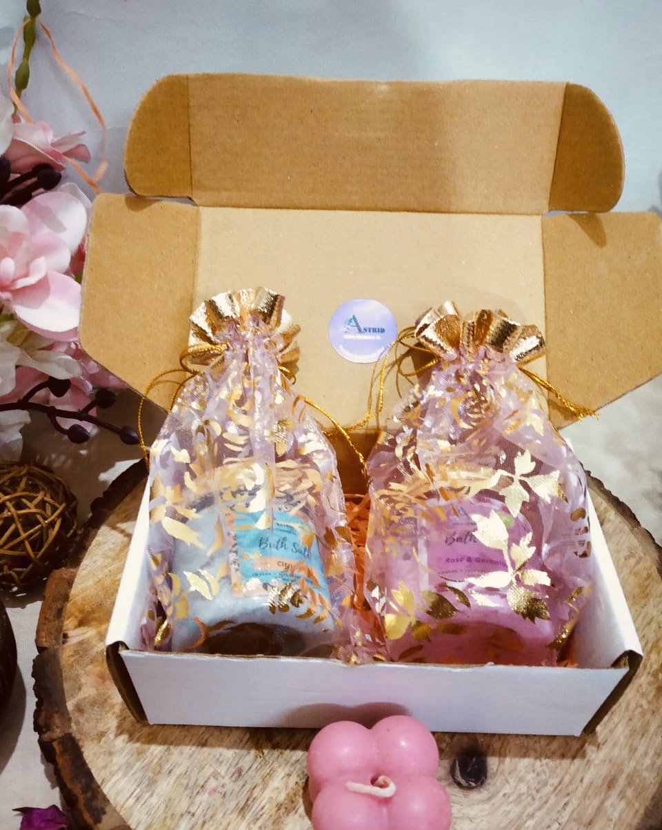 Bath Salt hamper-Bundle of two Bath salts-100 GMS each and bubble candle