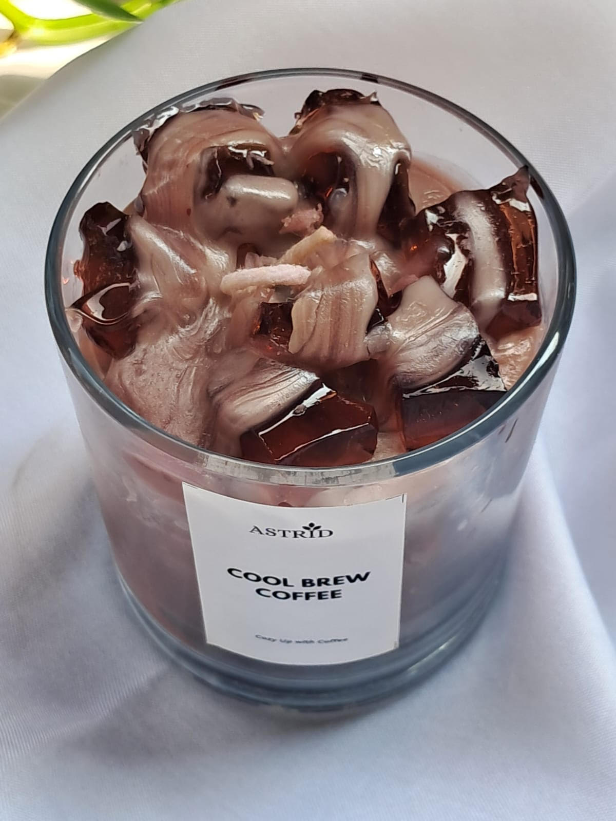 Bring the rich and indulgent aroma of a fresh coffee brew into your home with Astrid's Cool Brew Coffee scented candle. Handcrafted from premium soy wax and gel, this candle is a perfect blend of the cool and comforting notes of coffee, with playful decorative accents that resemble ice.