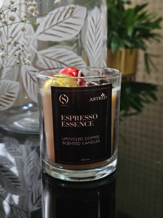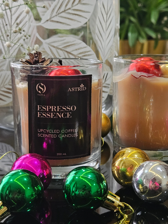 Crafted from upcycled and carefully selected used coffee grounds, this sustainable artisanal creation is perfect for your Christmas celebrations or a heartfelt gift for loved ones. Whether lighting up your home during festive evenings or adding a warm glow to cherished holiday moments, this candle is a symbol of love, joy, and sustainability.