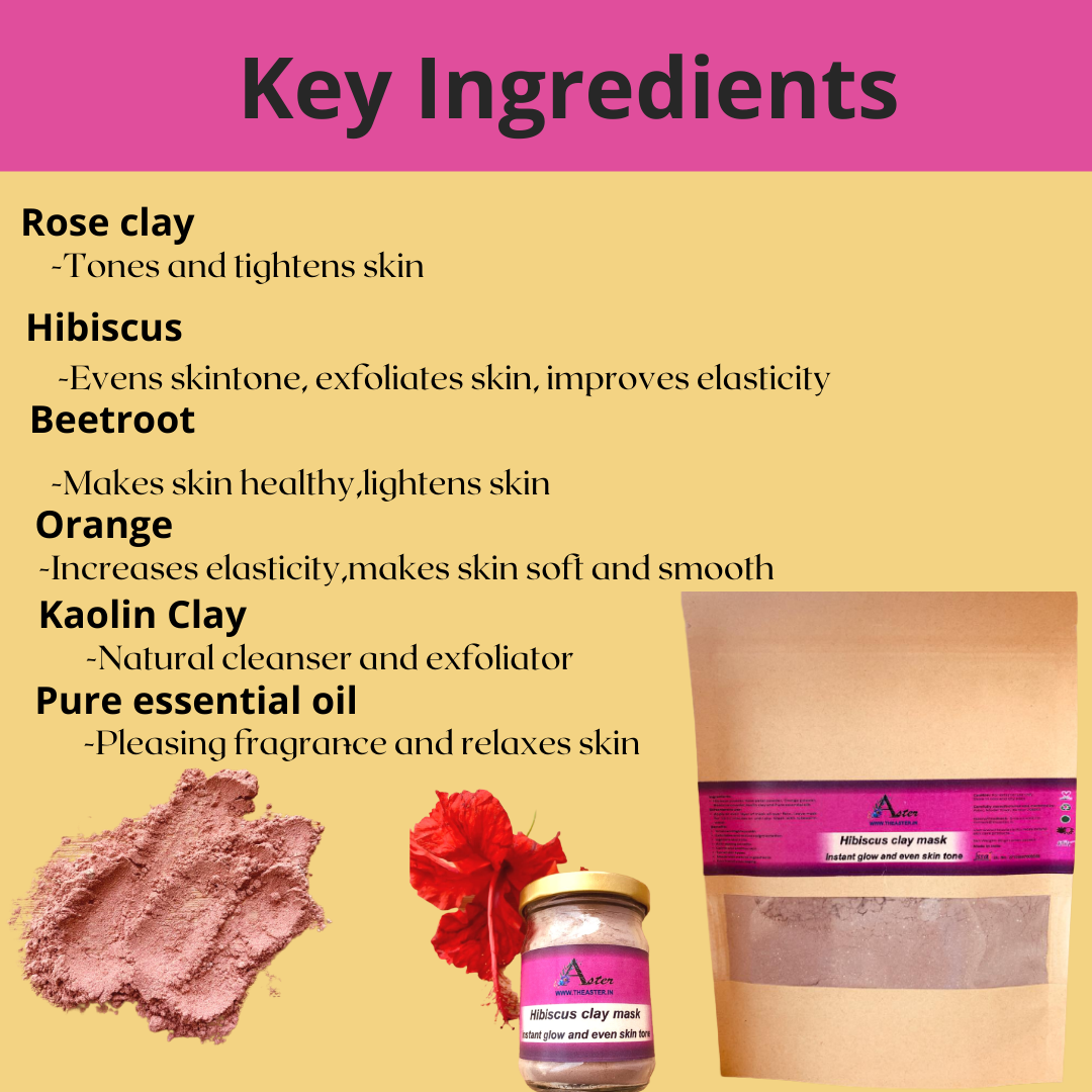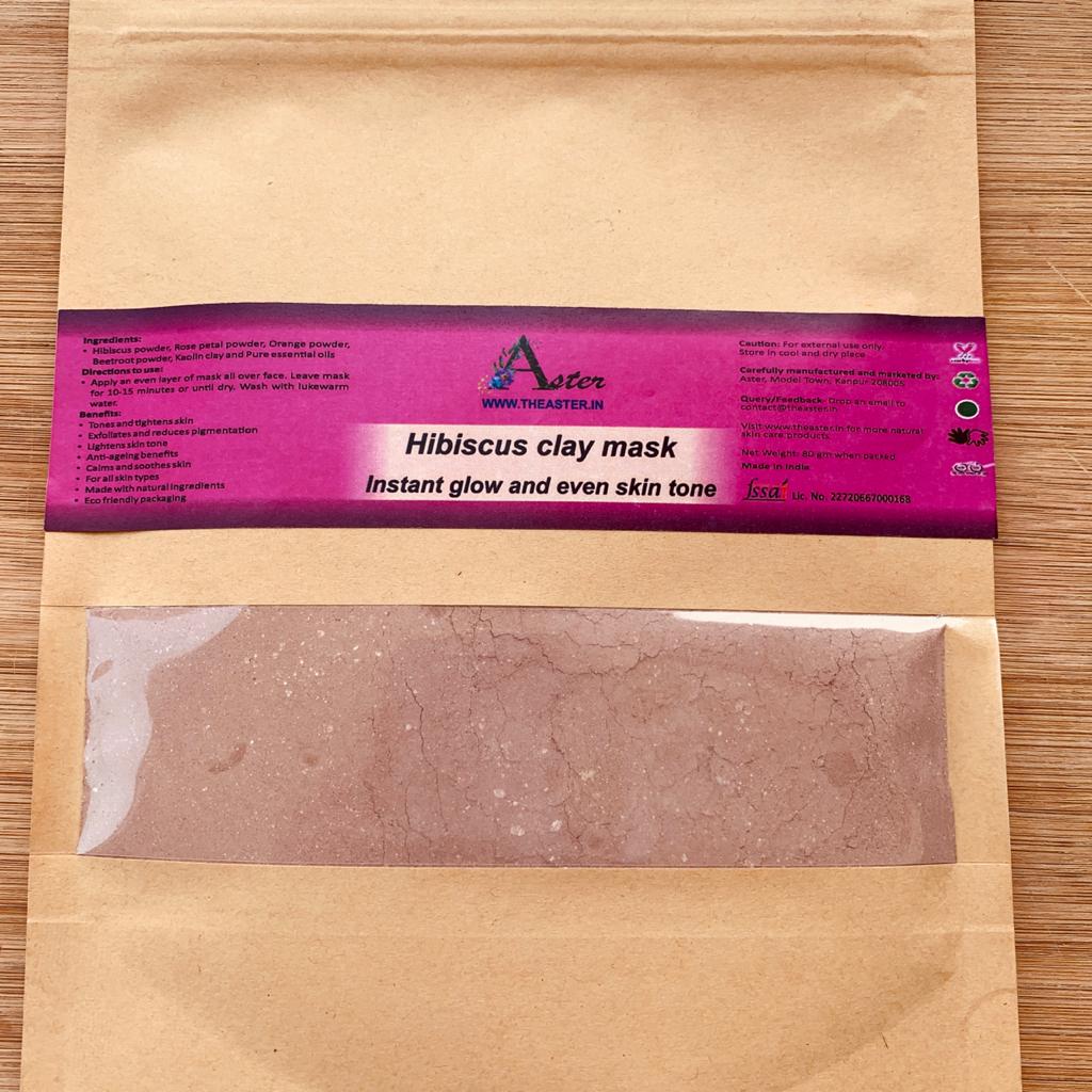 Hibiscus Clay mask (80 gms), Zip lock packaging, free coconut bowl set for mask application