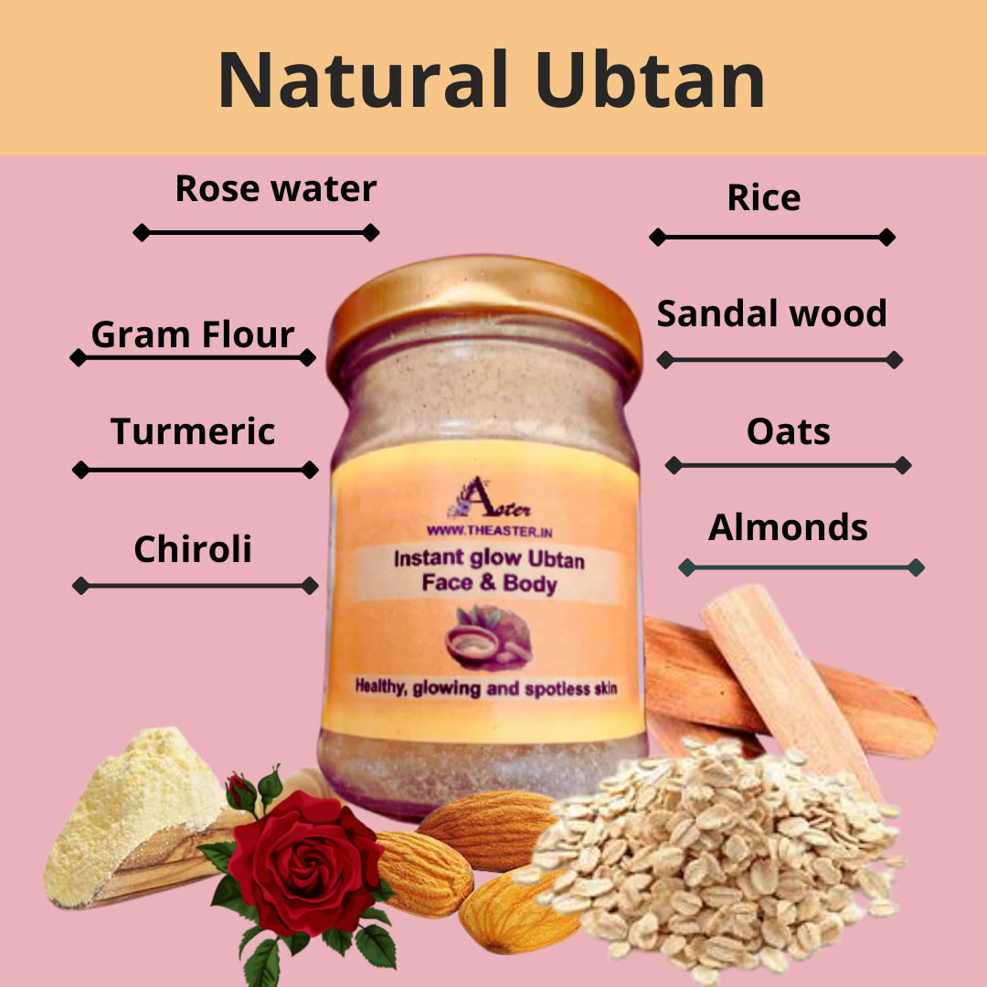 Ubtans are 100% natural cleansers that have been used for centuries by bride to achieve clear and radiant skin. These Ubtan if included in weekly skin care regime would make your skin soft, supple, healthy, even and radiant. The Aster Instant glow Ubtan includes ingredients with amazing natural properties. This Ubtan would gently exfoliate the skin and deeply cleanse and illuminate the skin.