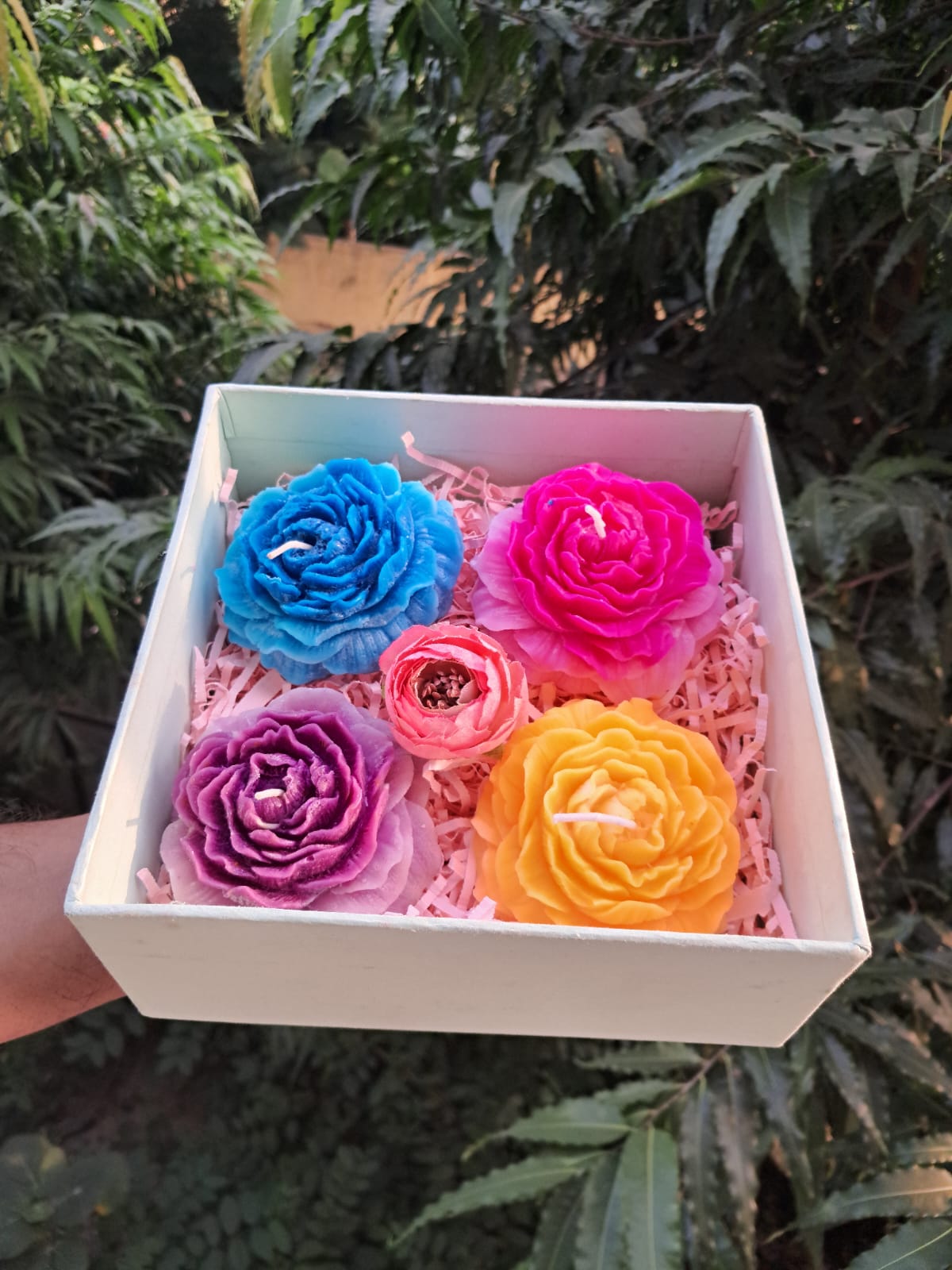 Peony Candles by Astrid | Pack of Four | Flower candle | Hand Poured | Decorative Scented Candle | 100% Soy Wax| Festive Gifting