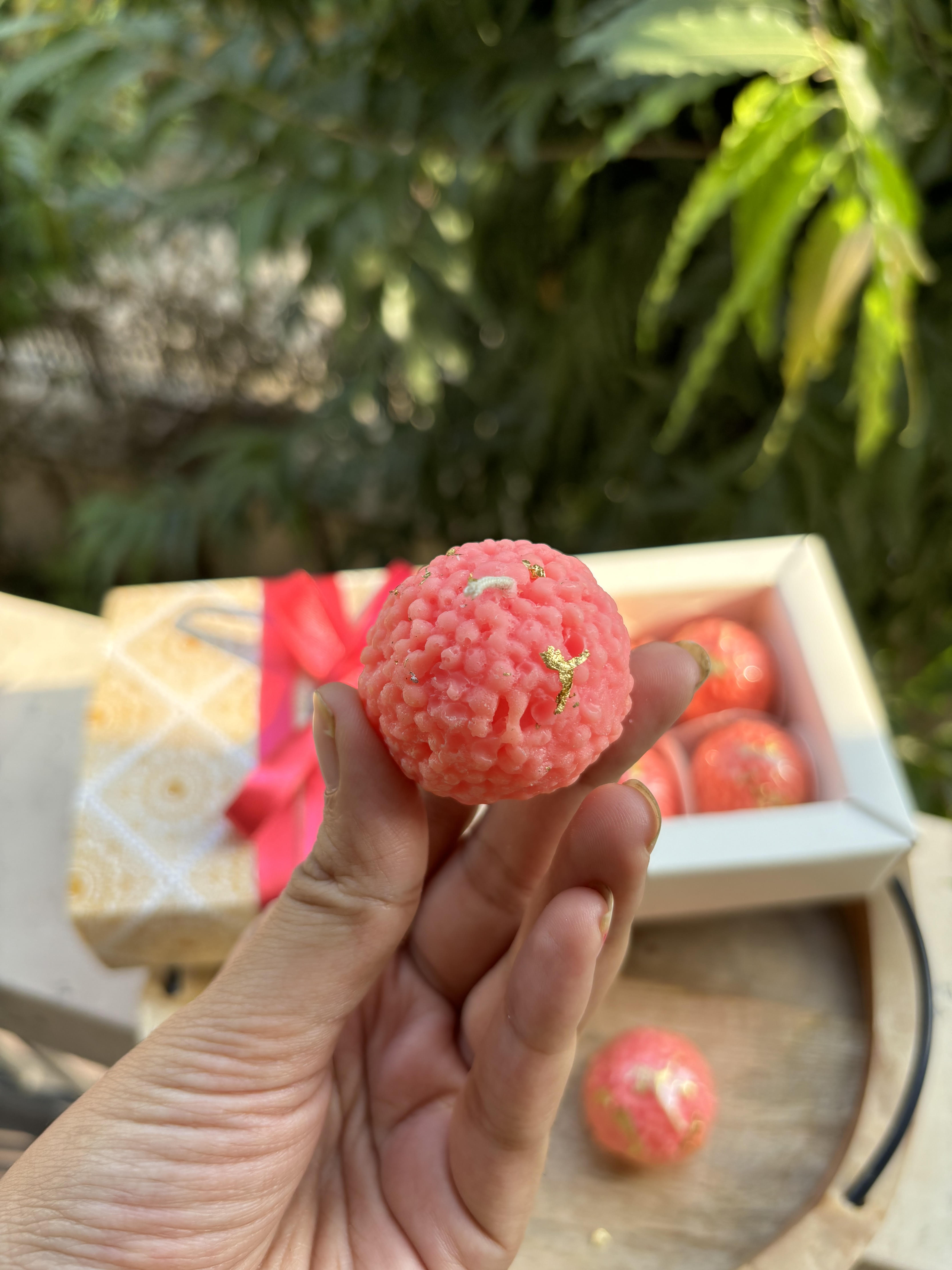 Pink Ladoo Candle by Astrid | Set of 6 | Pure Soy Wax Scented Ladoo Shape Candle | Dessert Candle | Mithai Candle | Diwali Candle | 100% Soy Wax| Festive Gifting | 30gm Each |