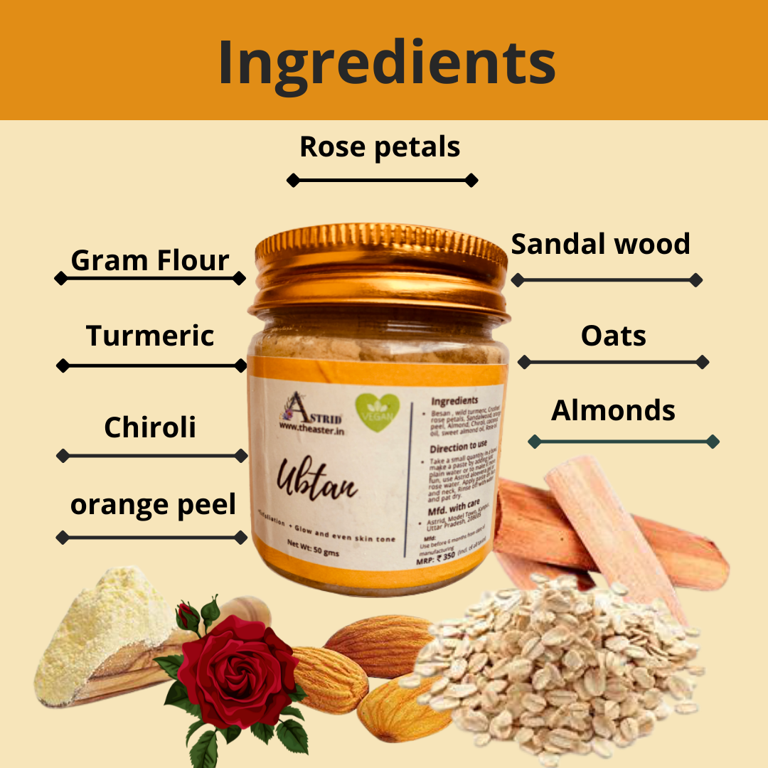 Ubtans are 100% natural cleansers that have been used for centuries to achieve clear and radiant skin. Ubtan if included in weekly skin care regime would make your skin soft, supple and healthy. Ubtan is an ayurvedic scrub that is great for exfoliation. It removes dull and tanned skin and make skin radiant and soft.